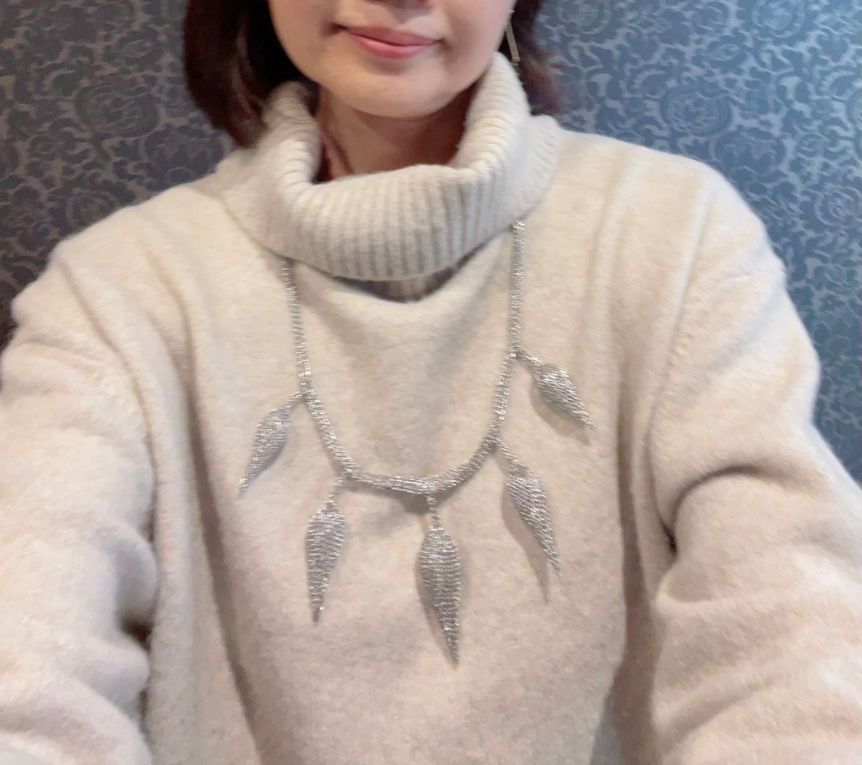 ※ 画像では、ネックレスのドロップ部分がとても大きな印象になりますが、思ったより大きい感じはならないかなと感じます。店長の感じ方によりますので、ご参考にしてください^ ^